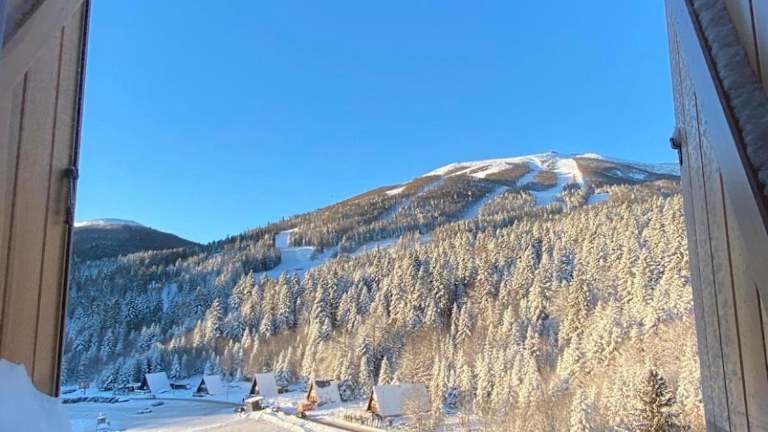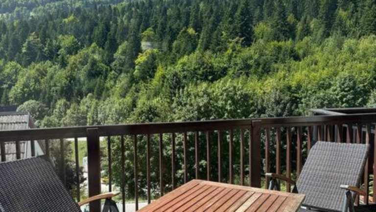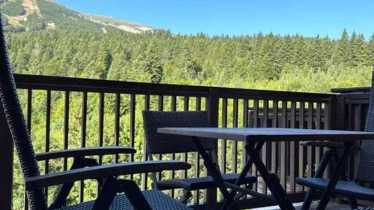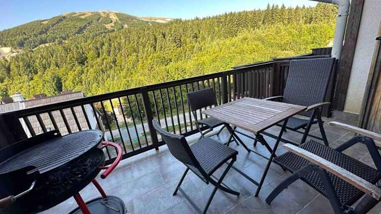 Die Unterkunft Bjelasnica with amazing view bietet Übernachtungsmöglichkeiten in einer Ferienwohnung, die eine Terrasse mit einem herrlichen Bergblick bietet.