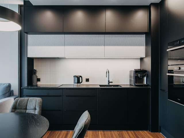 Die voll ausgestattete Küche bietet sämtliche Annehmlichkeiten, um eigene Mahlzeiten zuzubereiten. Diese Ferienwohnung stellt auch eine Kaffeemaschine zur Verfügung.