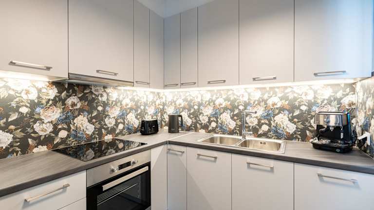 Die Ferienwohnung umfasst 2 Schlafzimmer, ein Wohnzimmer und eine voll ausgestattete Küche mit einem Ofen und einer Kaffeemaschine. Ein Badezimmer mit Dusche und kostenlosen Pflegeprodukten gehört ebenfalls zur Ausstattung. Handtücher und Bettwäsche werden bereitgestellt.