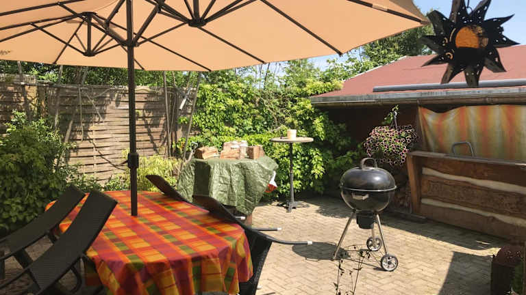 Die Unterkunft verfügt über 1 Schlafzimmer und 1 Badezimmer. Zur Ausstattung gehören Bettwäsche, Handtücher, ein Flachbild-TV mit Satellitenkanälen sowie ein Essbereich. Die voll ausgestattete Küche ermöglicht Selbstverpflegung, und eine Terrasse mit Gartenblick lädt zum Entspannen ein.