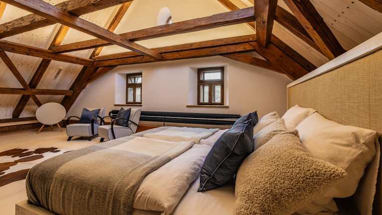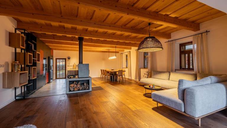 Blatiny 11 - venkovský dům ist eine gemütliche Villa, die eine einladende Terrasse mit Blick auf die Berge und den Garten bietet. Zu den Annehmlichkeiten zählen ein ganzjährig geöffneter Aussenpool, eine Sauna und ein Whirlpool, die für Erholung und Entspannung sorgen. Des Weiteren steht den Gästen eine Gemeinschaftslounge zur Verfügung.