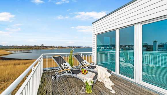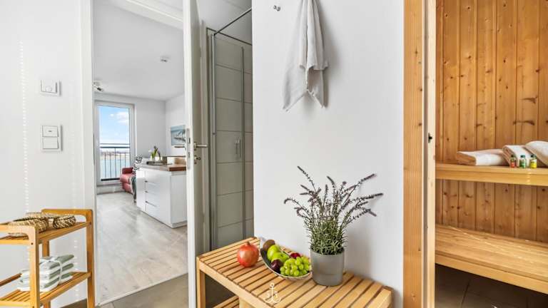 Die Unterkunft Blaue Brise ist gelegen in Olpenitz, nur 1,5 km vom Weidefelder Strand entfernt. Die Umgebung bietet eine ruhige Lage mit schönem Blick auf das Meer, ideal für entspannte Ferien.