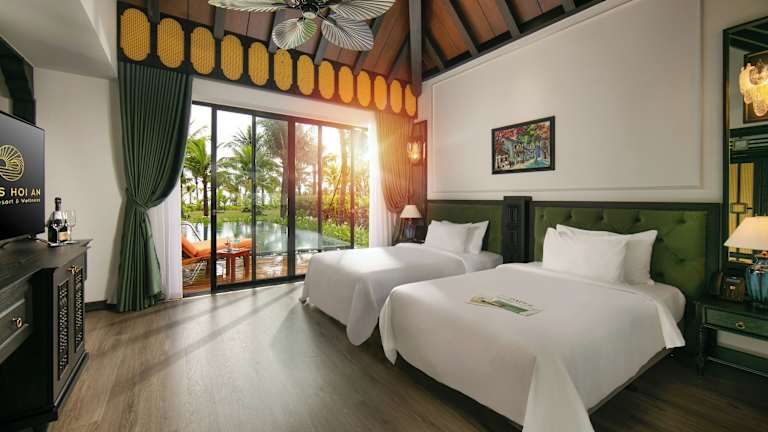 Das Hotel liegt eingebettet in tropische Gärten, direkt am feinsandigen und naturbelassenen Binh Minh Beach. Der VinWonders Themenpark ist in etwa 4 km Entfernung zu finden. Hoi An, eine pulsierende alte Handelsstadt, befindet sich 18 km entfernt. Der Flughafen Da Nang International Airport ist 45 km entfernt, was einer Fahrzeit von ca. 1 Stunde entspricht.