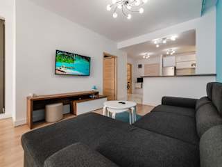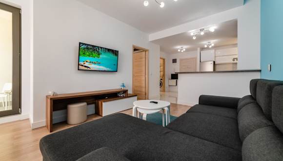 Die Unterkunft bietet eine Ferienwohnung mit Balkon und Meerblick, die ein Schlafzimmer, ein Wohnzimmer und ein Badezimmer mit Dusche umfasst. Ausgestattet ist die Wohnung mit einem Flachbild-TV, einer gut ausgestatteten Küche mit Kühlschrank und Ofen sowie mit Handtüchern und Bettwäsche.