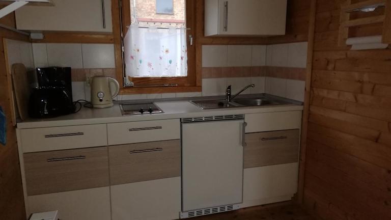 Die Blockhäuser an der Müritz sind mit einer voll ausgestatteten Küche ausgestattet, die Herdplatte, Kühlschrank, Mikrowelle sowie einen Toaster, Kaffeemaschine und Wasserkocher beinhaltet. Hier können Gäste nach Belieben ihre eigenen Mahlzeiten zubereiten. Für gesellige Grillabende steht ein Grill vor Ort zur Verfügung.