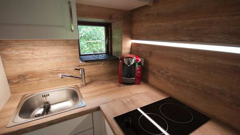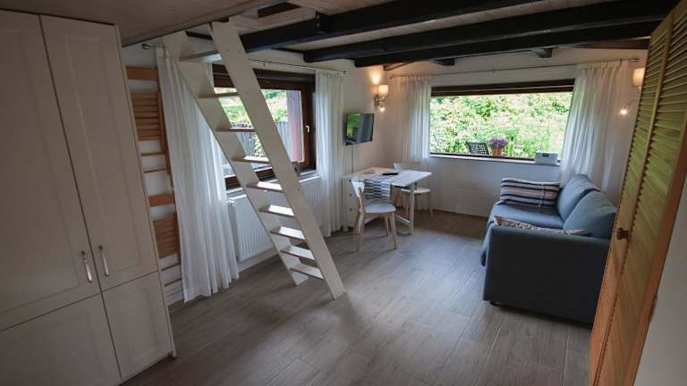 Das Ferienhaus besteht aus einem Schlafzimmer, einem Wohnzimmer sowie einer voll ausgestatteten Küche mit Kühlschrank und Kaffeemaschine. Ein Badezimmer mit Dusche und kostenlosen Pflegeprodukten ist ebenfalls vorhanden. Handtücher und Bettwäsche werden bereitgestellt.