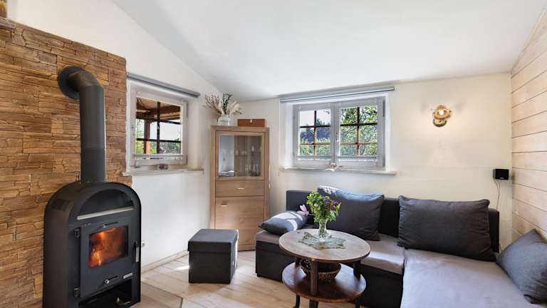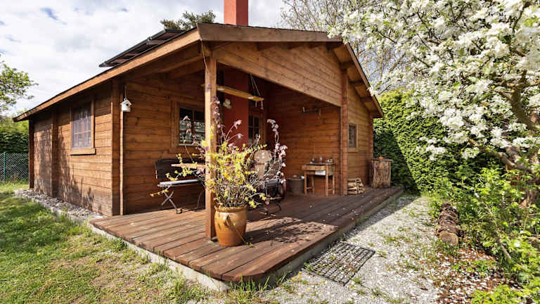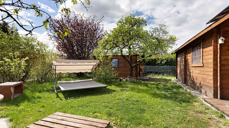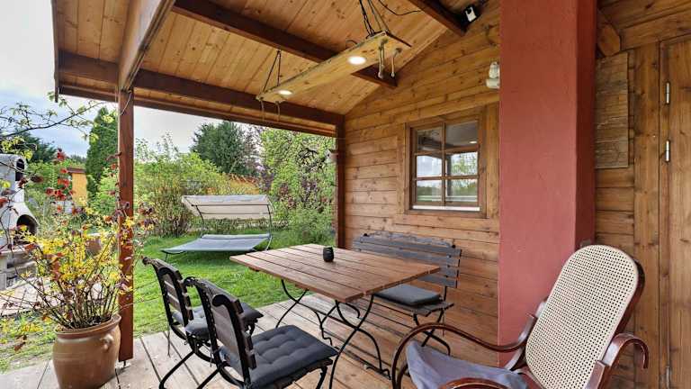 Die Blockhütte bietet eine heimelige Atmosphäre mit einem Garten und Grillmöglichkeiten, ideal für entspannte Ferien in der Natur.