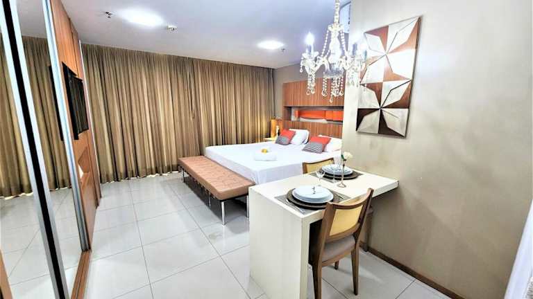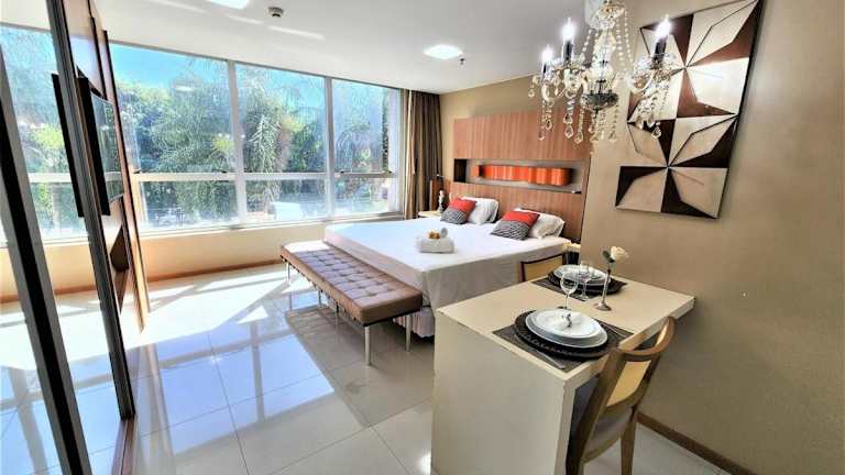Bloco A AP 310 · Hotel Jade, Park Sul vista livre bietet eine Heimelige Atmosphäre mit einem Garten und einer Sauna. Die Unterkunft ist ideal für Gäste, die eine ruhige und entspannte Umgebung suchen.