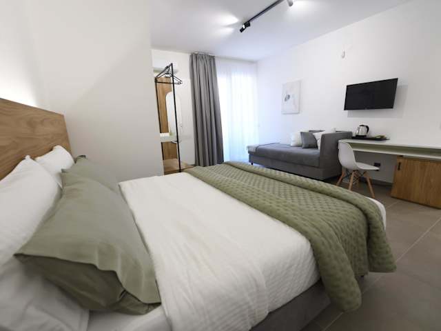 Die Wohneinheiten sind mit einer Terrasse ausgestattet und verfügen über eine Klimaanlage, einen Flachbild-TV sowie ein eigenes Badezimmer mit Bidet und kostenlosen Pflegeprodukten. Ein voll ausgestattetes Badezimmer mit Dusche und Haartrockner ist ebenfalls vorhanden.