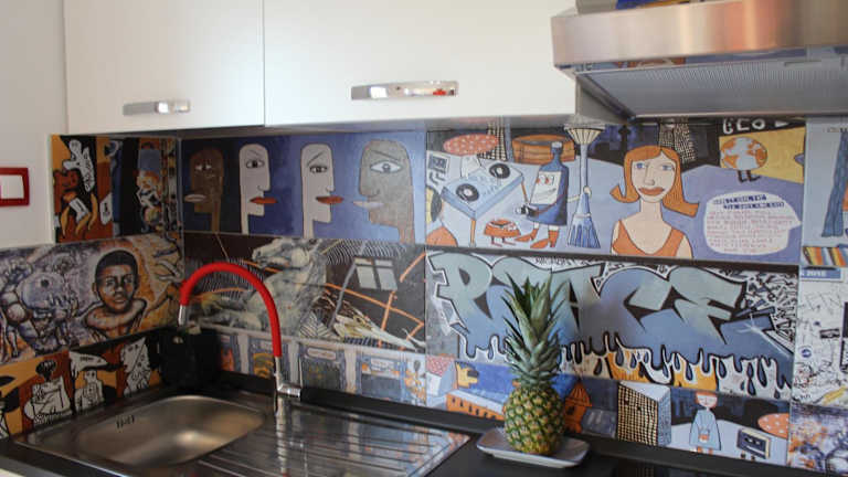 Das Blue Art Apartment umfasst drei Schlafzimmer, ein Wohnzimmer und eine voll ausgestattete Küche mit Kühlschrank und Kaffeemaschine. Es verfügt über drei Badezimmer, die mit Bidet und Dusche ausgestattet sind. Handtücher und Bettwäsche werden bereitgestellt. Die Wohnung ist klimatisiert und bietet schallisolierte Zimmer sowie allergikerfreundliche Optionen.