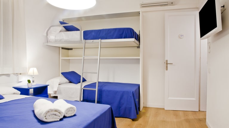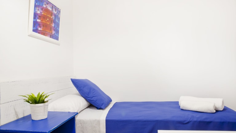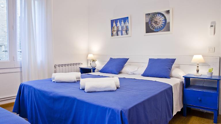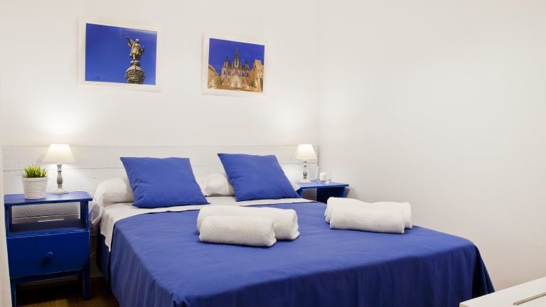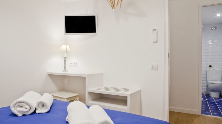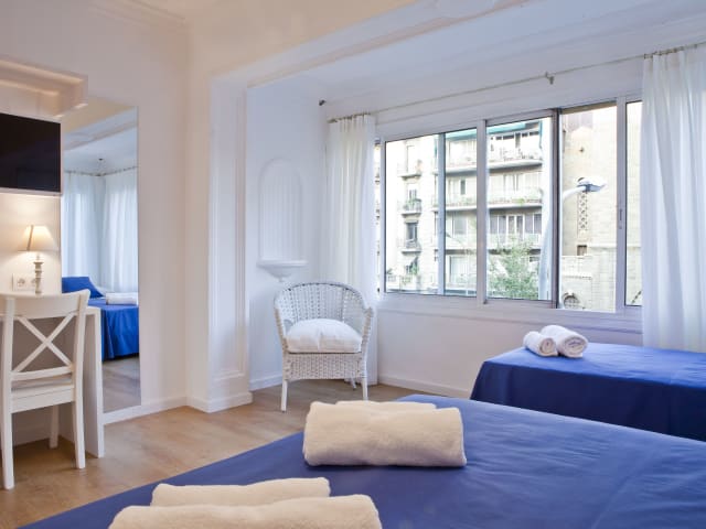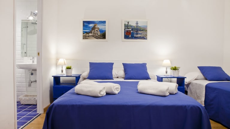 Die klimatisierten Zimmer im Blue Barcelona sind mit einem Flachbild-Sat-TV, einem Schreibtisch und einem Hartholzboden ausgestattet. Einige Zimmer verfügen über ein eigenes Bad mit Badewanne oder Dusche sowie kostenfreien Pflegeprodukten, während andere Zimmer Zugang zu einem Gemeinschaftsbad bieten.