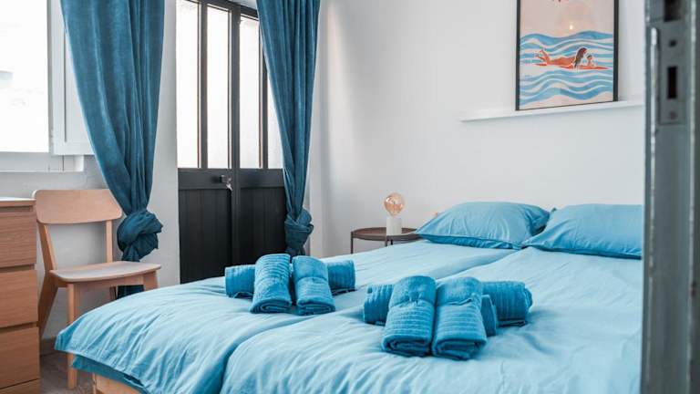 Die Unterkunft Blue Bay besticht durch eine heimelige Atmosphäre und moderne Annehmlichkeiten. Gästen wird kostenloses WLAN sowie eine Klimaanlage bereitgestellt. Die Terrasse und der Balkon laden zum Verweilen ein und bieten einen Blick auf die Stadt.