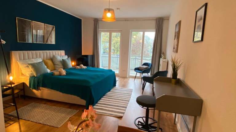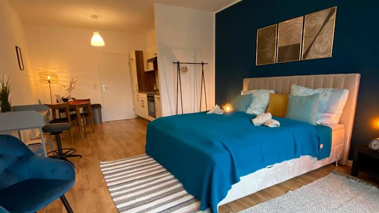 Blue Chili 03 - Magdeburg Business Apartment bietet Übernachtungsmöglichkeiten mit Gartenblick. Die praktische Lage ermöglicht den Gästen einfachen Zugang zu verschiedenen kulturellen Sehenswürdigkeiten in der Stadt.