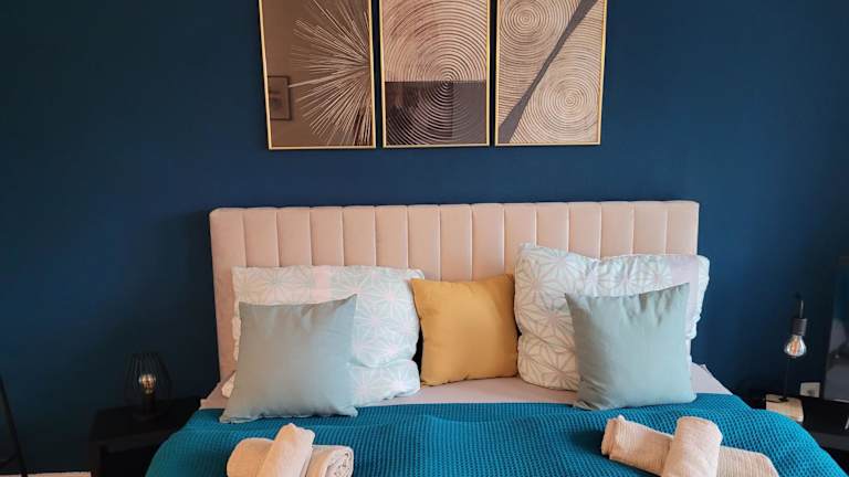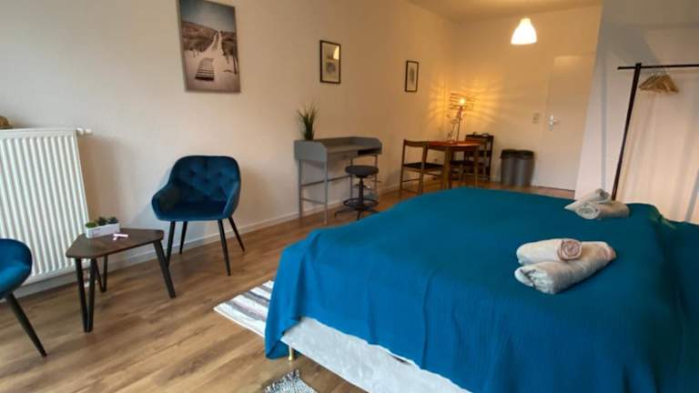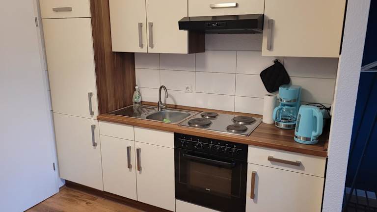 Die Ferienwohnung verfügt über ein Schlafzimmer, eine gut ausgestattete Küche mit Kühlschrank und Ofen, ein Flachbild-TV, einen Sitzbereich sowie ein Badezimmer mit Badewanne. Zur Ausstattung gehören ebenfalls Balkon, Kaffeemaschine, Handtücher und Bettwäsche.