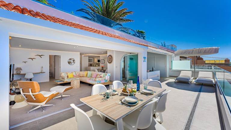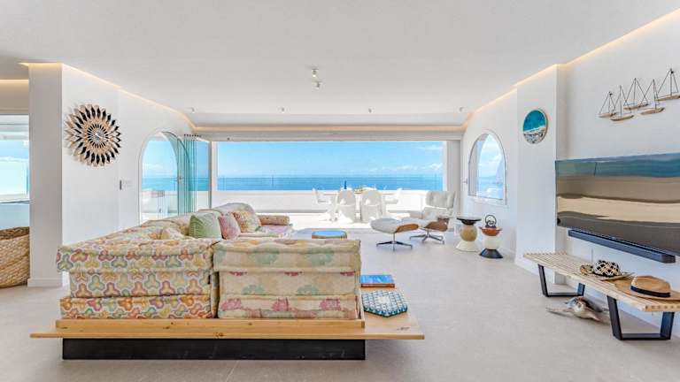Blue Haven - Ocean View Penthouse mit privatem Jacuzzi und Gemeinschaftspool bietet einen eigenen Pool und beeindruckt mit einem atemberaubenden Meerblick sowie Bergblick. Die Unterkunft ist klimatisiert und bietet eine voll ausgestattete Küche, mehrere Badezimmer und ist für die Bequemlichkeit der Gäste ausgestattet.
