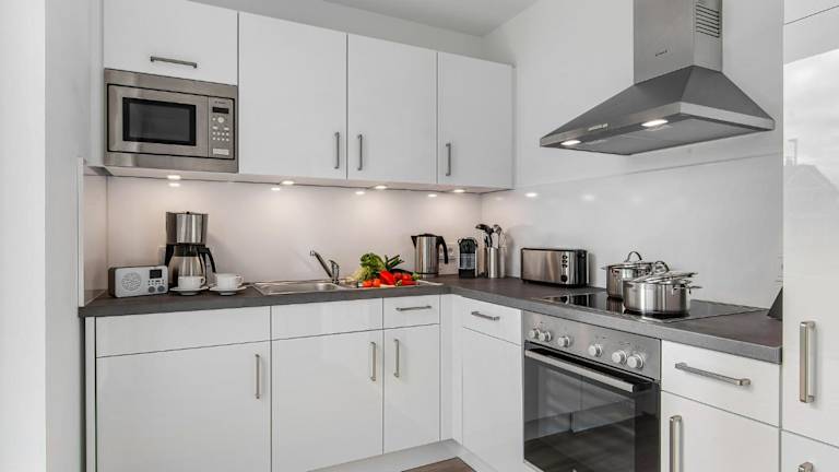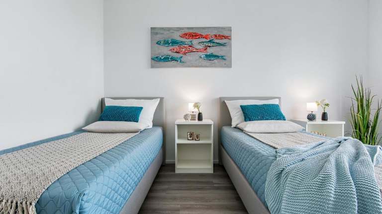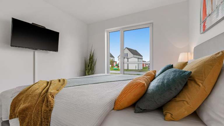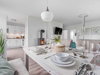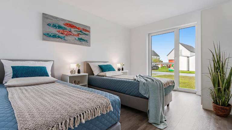 Das Ferienhaus befindet sich im Erdgeschoss und bietet Zugang zu zwei Schlafzimmern. Eine voll ausgestattete Küche bietet den Gästen einen Kühlschrank, einen Geschirrspüler, eine Waschmaschine, einen Ofen sowie eine Mikrowelle. Ein TV sorgt für Unterhaltung im Aufenthaltsbereich.