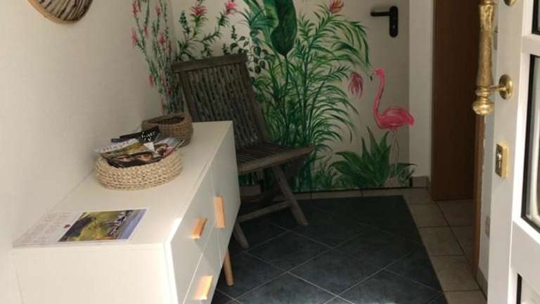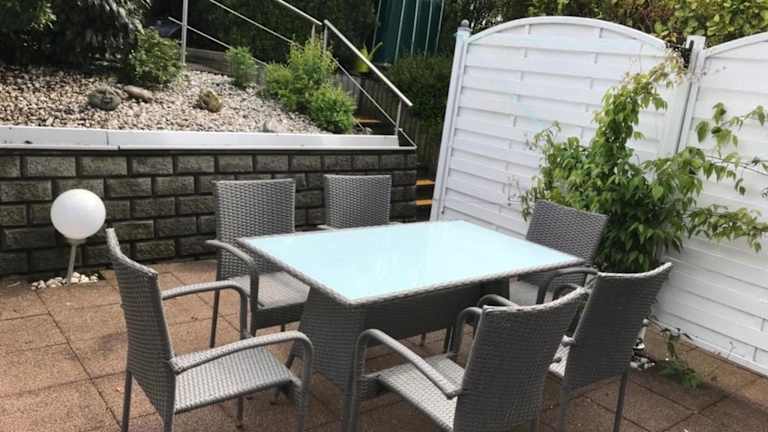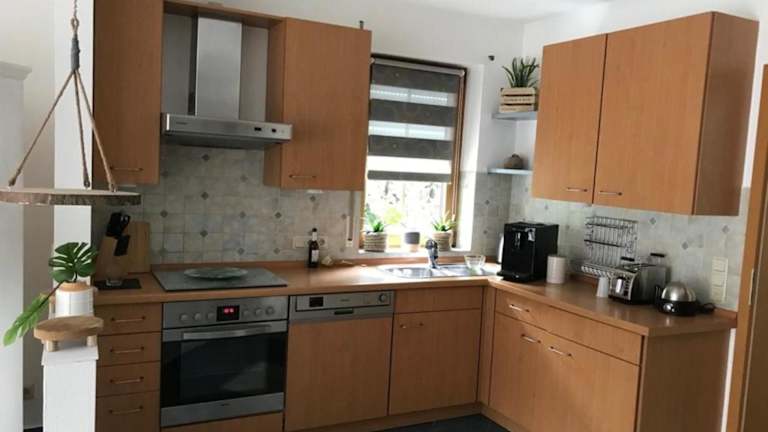 Die Ferienwohnung hat ein Schlafzimmer, ein Wohnzimmer und eine gut ausgestattete Küchenzeile mit Kühlschrank und Geschirrspüler. Handtücher und Bettwäsche werden zur Verfügung gestellt.