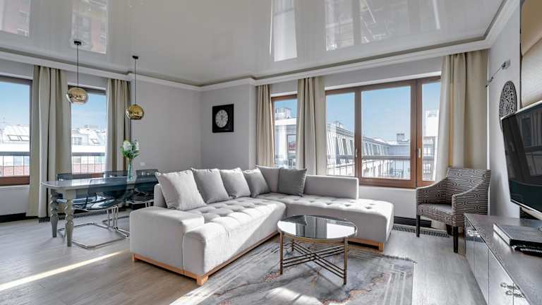 Die Zimmer sind modern eingerichtet und verfügen über einen Flachbild-TV sowie eine voll ausgestattete Küche mit Geschirrspüler, Kühlschrank, Backofen und Wasserkocher.