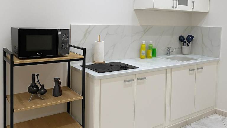 Das Zimmer in der Unterkunft besteht aus einem Schlafzimmer, einem Wohnzimmer und einer gut ausgestatteten Küche mit Kühlschrank und Mikrowelle. Ein Flachbild-TV sorgt für Unterhaltung, während ein Balkon für entspannende Momente im Freien einlädt.