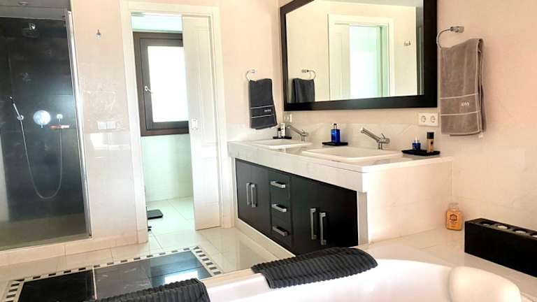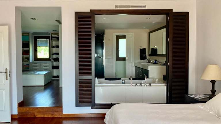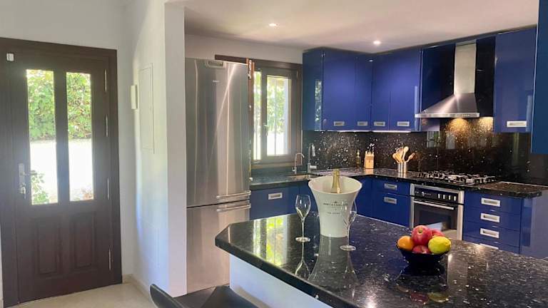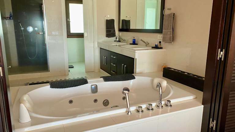 Die klimatisierte Villa verfügt über 3 Schlafzimmer und bietet Platz für bis zu 6 Gäste. Eine voll ausgestattete Küche mit Kühlschrank und Geschirrspüler ist vorhanden. Zudem gibt es einen Flachbild-TV, einen Sitzbereich sowie 4 Badezimmer, die mit einem Bidet ausgestattet sind. Handtücher und Bettwäsche werden bereitgestellt.