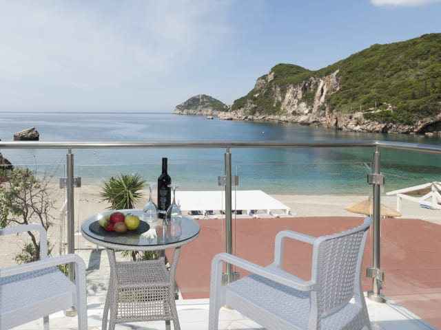 Lage: Idyllisch, direkt am Strand, neben der traditionellen Liapades Village gelegen. Je nach Lage des Zimmers, ist der Strand ca. 50 m -170m entfernt. Der Ort Liapades ist ca. 1 km entfernt, der Flughafen ca. 19 km. Eine Bushaltestelle befindet sich 1 km vom Hotel entfernt. Die Inselhauptstadt Korfu Stadt erreichen Sie in ca. 19 km.