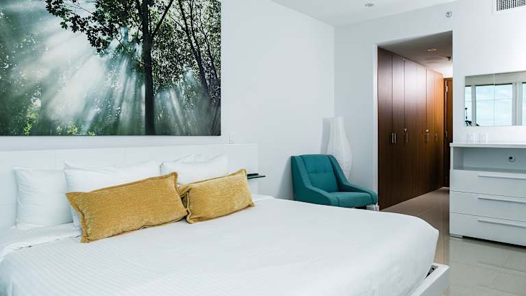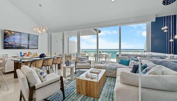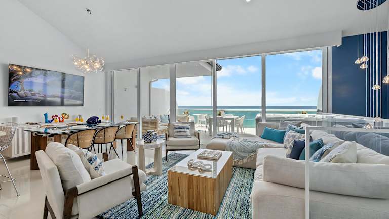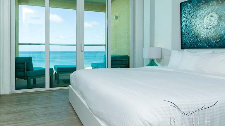 Die Blue Residences befinden sich am Strand Palm Beach, direkt neben dem Vogelschutzgebiet Bubali Bird Sanctuary. Der Flughafen Queen Beatrix International ist etwa 8 km entfernt, während der Strand Eagle Beach in 1,6 km Distanz liegt. In der näheren Umgebung finden sich zahlreiche Restaurants, die eine Vielzahl an kulinarischen Angeboten bereithalten.