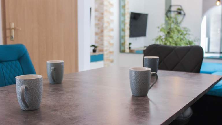 Die Ferienwohnung umfasst zwei Schlafzimmer, ein Wohnzimmer sowie eine voll ausgestattete Küche mit Kühlschrank und Kaffeemaschine. Es stehen zwei Badezimmer mit Bidet und Dusche zur Verfügung. Handtücher und Bettwäsche werden zur Verfügung gestellt.