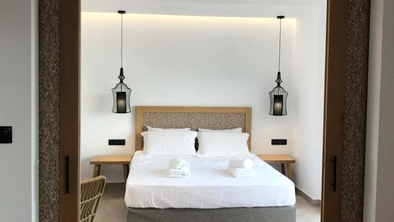 Die Zimmer der blue sea suites sind modern eingerichtet und bieten Annehmlichkeiten wir Klimaanlage und eine voll ausgestattete Küche. Jedes Zimmer verfügt über ein eigenes Bad mit Dusche, kostenfreien Pflegeprodukten und einem Haartrockner. Einige Unterkünfte bieten zusätzlich eine Terrasse oder einen Balkon mit Meer- oder Bergblick.