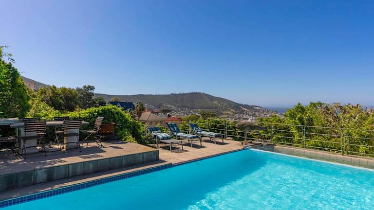 Die Villa Blue Sky in Kapstadt bietet Übernachtungsmöglichkeiten in einer heimeligen Atmosphäre mit einem Aussenpool, einem kostenlosen Privatparkplatz, einem Garten sowie einer Gemeinschaftslounge. Gäste können die Terrasse oder den Grillbereich nutzen und dabei einen herrlichen Stadt- oder Meerblick geniessen.