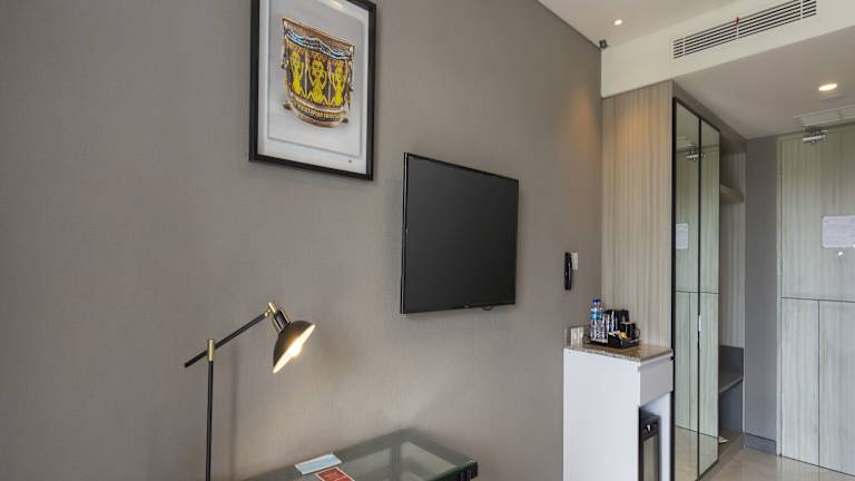 Die Zimmer im Blue Sky Hotel sind komfortabel eingerichtet und bieten ein angenehmes Raumklima durch eine individuell regulierbare Klimaanlage. Alle Zimmer verfügen über ein Doppelbett, ein Queensize-Bett oder ein Kingsize-Bett sowie über ein eigenes Badezimmer mit Dusche und Badewanne, in dem Bademäntel bereitgestellt werden. Zur weiteren Ausstattung gehören ein Safe, eine Minibar, ein Schreibtisch, eine Tee-/Kaffeemaschine und ein TV-Gerät mit Satelliten-/Kabelempfang. Kosmetikartikel sind in den Badezimmern vorhanden. Das Hotel bietet zudem Familien-, Nichtraucher- und Raucherzimmer an.