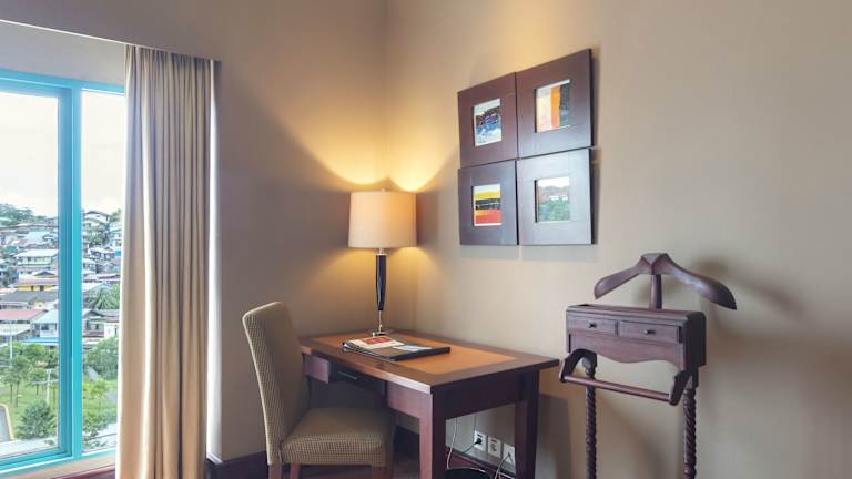 Gäste können in mehreren gastronomischen Einrichtungen des Hotels speisen. Dazu gehören ein japanisches Restaurant, ein chinesisches Restaurant sowie ein Café, in dem indonesische Gerichte serviert werden. Die Bar bietet eine Auswahl an Getränken. Die Hauptmahlzeiten werden in Menüform angeboten und beinhalten ein reichhaltiges Frühstücksbuffet.
