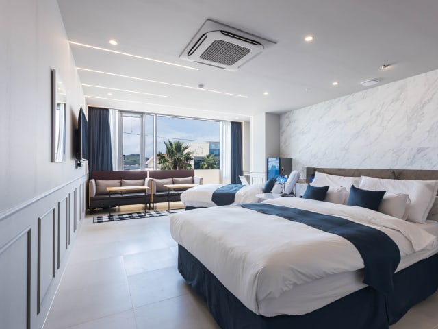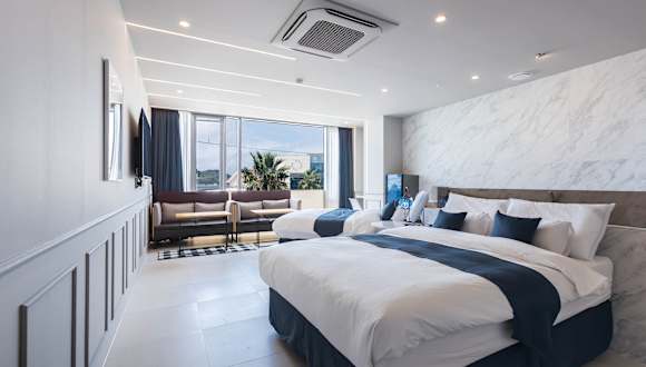 Das Blue Spring Hotel befindet sich direkt am Strand in Hallim-eup, Jeju-do. Es liegt 2,7 km vom Strand Geumneung und 2,2 km vom Strand Hyeopjae entfernt. Sehenswürdigkeiten wie das Teemuseum O'sulloc sind 13 km entfernt und der Jungmun Tourism Complex befindet sich 25 km von der Unterkunft. Der Internationaler Flughafen Jeju ist 27 km entfernt.