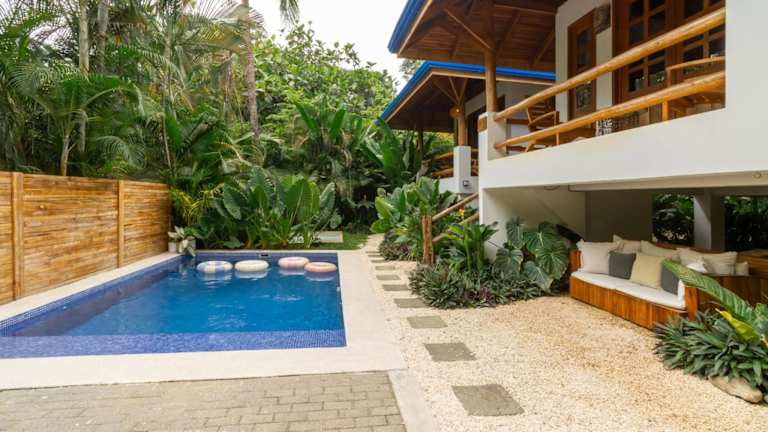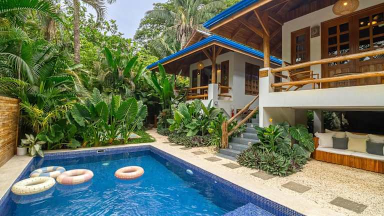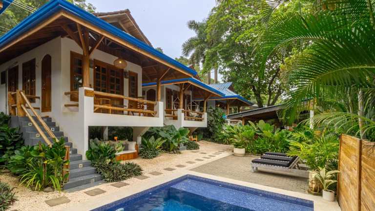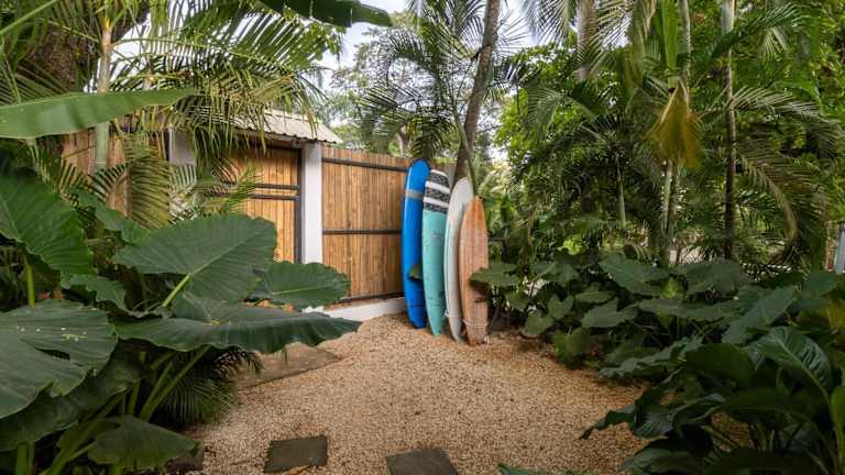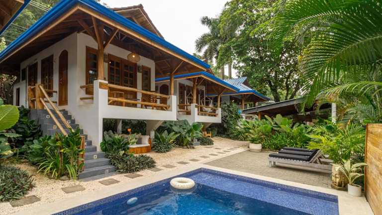 Das Blue Surf Sanctuary befindet sich in ruhiger Lage im Dschungel eines kleinen Surferdorfes, zwischen der Playa Manzanillo und Playa Santa Teresa. Nur 100 m vom Strand Santa Teresa und dem Surfspot Suck Rock entfernt. Die Wasserfälle Montezuma sind in 30 Fahrminuten erreichbar, das Naturschutzgebiet Cabo Blanco sowie die Insel Tortuga in 60 Fahrminuten.