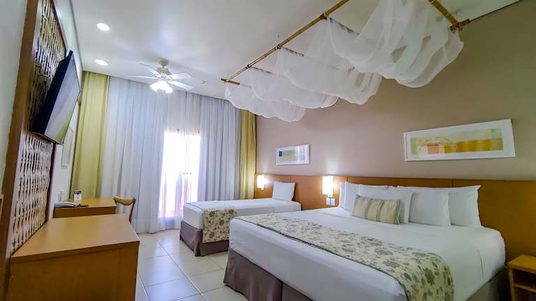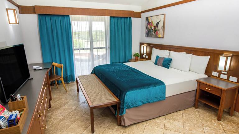 Die Zimmer bieten einen angenehmen Komfort mit individueller Klimaanlage, einem Safe und einer Minibar. Sie sind mit einem Doppelbett, Queensize- oder Kingsize-Bett ausgestattet. Alle Zimmer verfügen über einen Fernseher mit Satellitenempfang und kostenfreies WLAN. Die Badezimmer sind mit Dusche und Badewanne ausgestattet und bieten einen Haartrockner. Rollstuhlgerechte Zimmer stehen ebenfalls zur Verfügung.