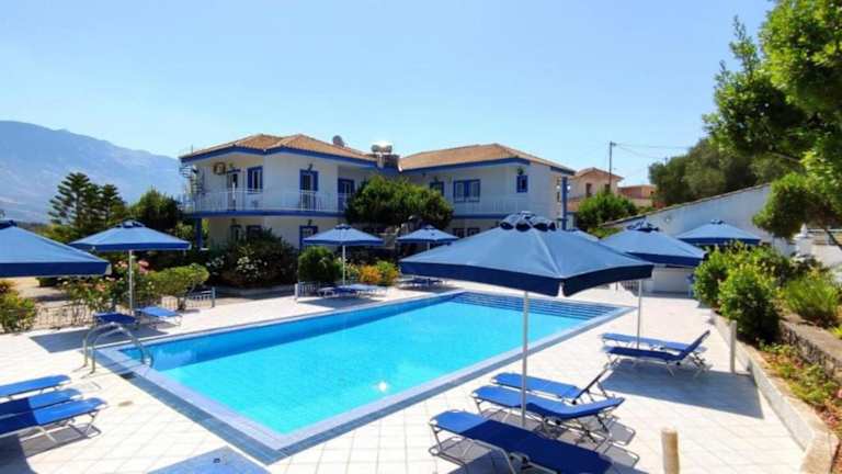 Die Blue White Apartments - Kefallonia Poolside Retreats bieten eine einladende Atmosphäre und sind mit einem saisonalen Aussenpool, einem Garten, einer Terrasse sowie einer Bar ausgestattet. Die Unterkunft setzt auf moderne Annehmlichkeiten und gewährleistet durch kostenloses WLAN in der gesamten Anlage eine gute Erreichbarkeit.