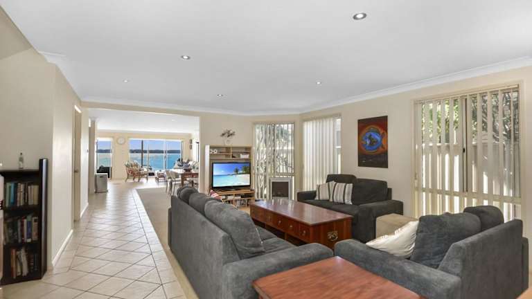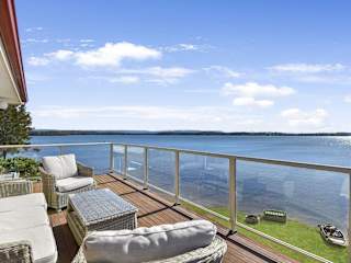 Bluewater at Mannering Park besticht durch einen Garten und eine Klimaanlage. Die Unterkunft bietet ein Ferienhaus mit Balkon, das mit 4 Schlafzimmern und 3 Badezimmern ausgestattet ist. Die Gäste haben direkten Zugang zu einer Terrasse mit Seeblick und können den gemeinschaftlichen Garten geniessen.