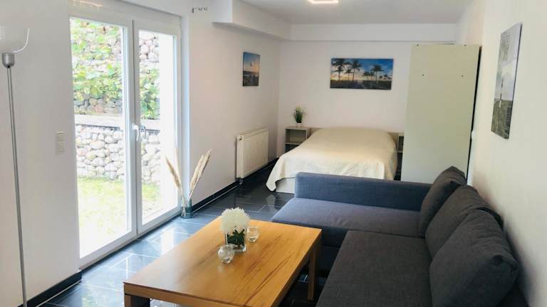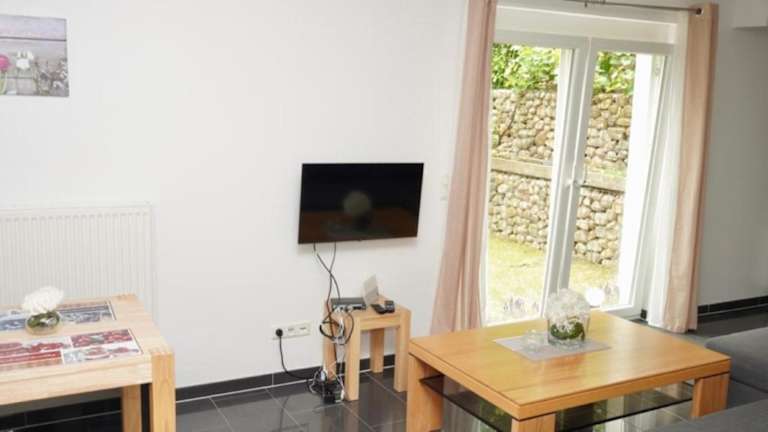 Die Ferienwohnung verfügt über 1 Schlafzimmer und 1 Badezimmer. Die Ausstattung umfasst Bettwäsche, Handtücher und einen Flachbild-TV mit Satellitenkanälen. Eine voll ausgestattete Küche und ein Essbereich sind ebenfalls vorhanden. Die Terrasse bietet einen schönen Gartenblick.