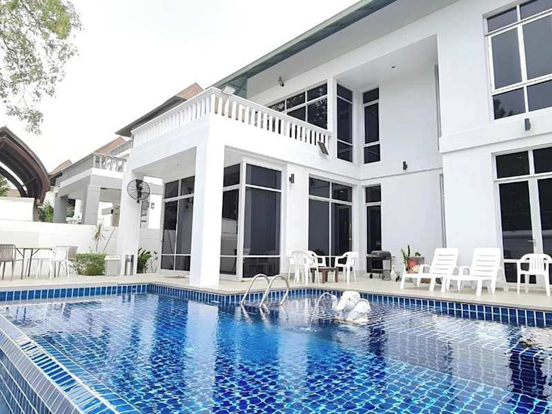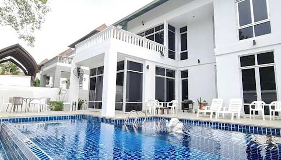 Die bm-Private Pool Villa Pattaya Jomtien Beach Nagawari Bbq ist eine luxuriöse Unterkunft, die über einen eigenen Aussenpool, einen Garten sowie eine Gemeinschaftslounge verfügt. Sie bietet Platz für 14 bis 18 Gäste und umfasst 4 Schlafzimmer und 4 Badezimmer.