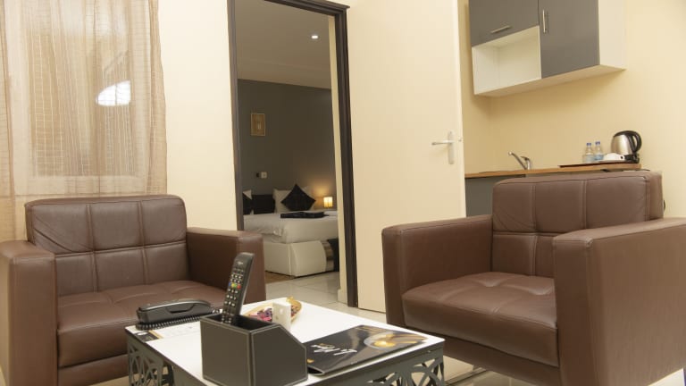 Im Hotelrestaurant werden verschiedene Küchen angeboten, darunter afrikanische, amerikanische und französische Speisen. Auf Anfrage sind auch vegetarische und milchfreie Optionen erhältlich. Die Gäste haben die Möglichkeit, das Essen im Zimmer zu geniessen, und es gibt eine Snackbar für kleine Zwischenmahlzeiten. Zudem wird ein Frühstücks-Service angeboten, welcher die Möglichkeit für Frühstück im Zimmer umfasst.
