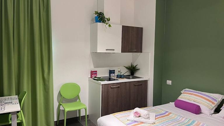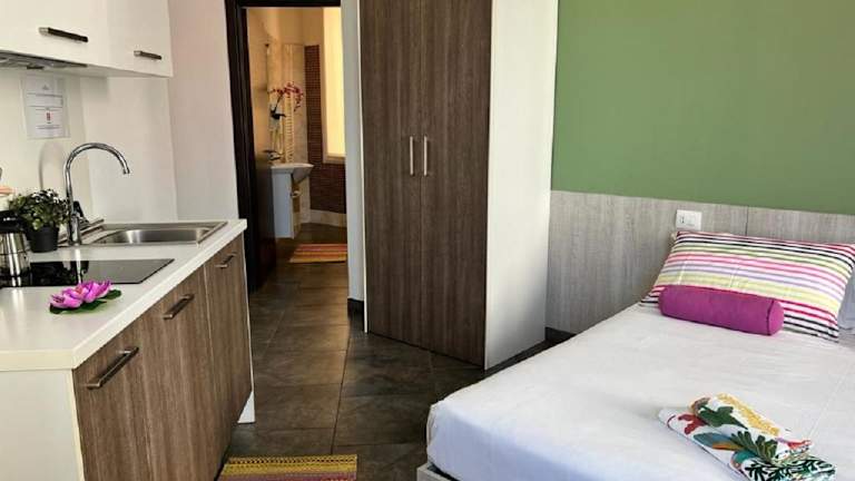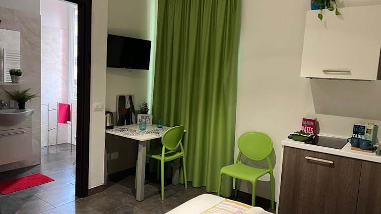 Die Zimmer sind klimatisiert und bieten eine voll ausgestattete Küchenzeile mit Kühlschrank, Herdplatte und Kaffeemaschine. Ein Flachbild-TV ist ebenfalls vorhanden. Jedes Zimmer verfügt über ein eigenes Badezimmer mit Bidet, kostenlosen Pflegeprodukten und einem Haartrockner. Auch Babybetten sind auf Anfrage verfügbar.