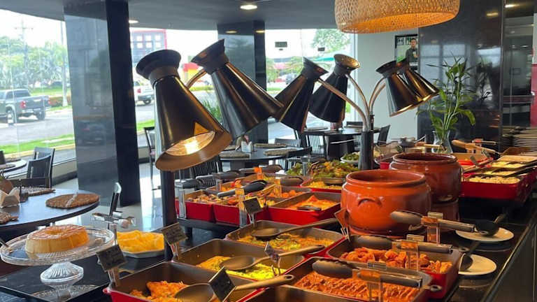 Das Rio Branco Restaurant bietet eine Kombination aus mediterraner und amazonischer Küche. Ein reichhaltiges Frühstücksbuffet mit tropischen Früchten und regionalen Produkten wird serviert. Zusätzlich stehen zwei Bars zur Verfügung: die Solarium Lounge auf dem Dach für entspannte Abende und das Tambaqui in der Lobby, wo Snacks und tropische Cocktails zur Happy Hour angeboten werden.