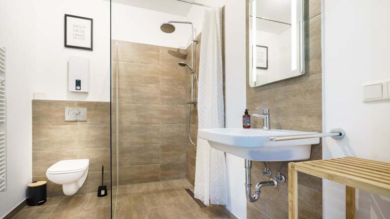 Die Ferienwohnung besteht aus 2 Schlafzimmern und einem Wohnzimmer. Ein Badezimmer mit Dusche sowie die Bereitstellung von Handtüchern und Bettwäsche sind ebenfalls vorhanden.