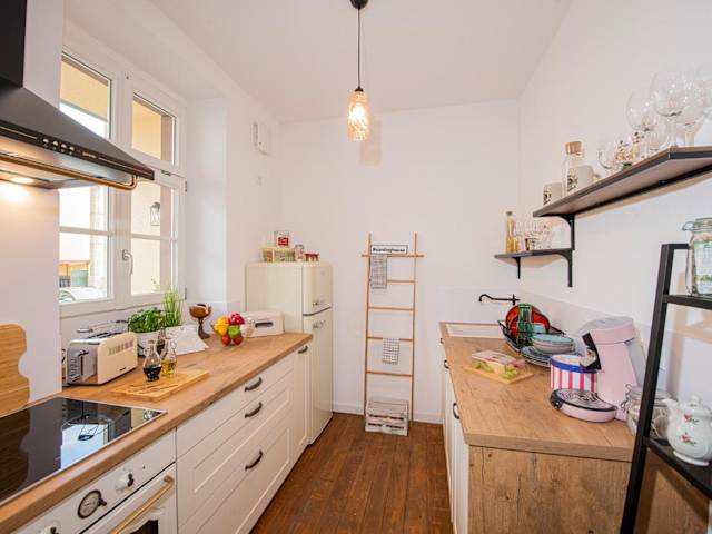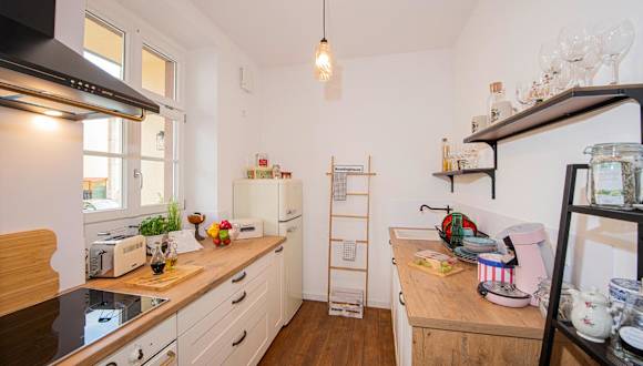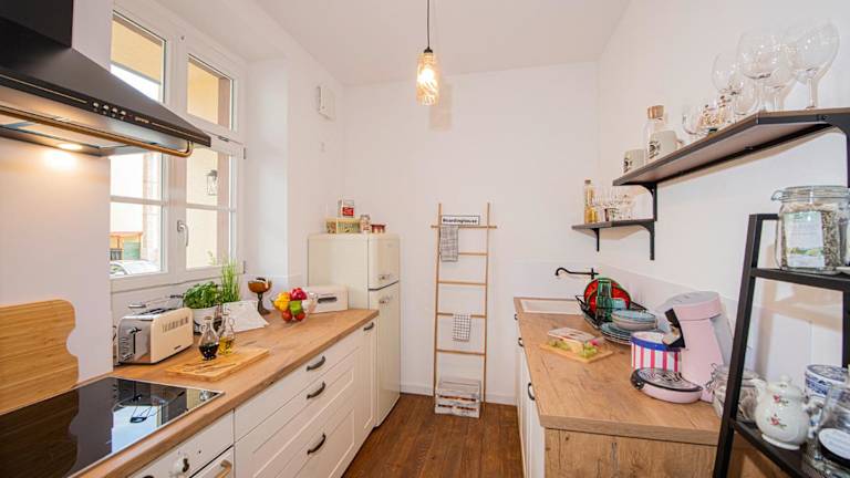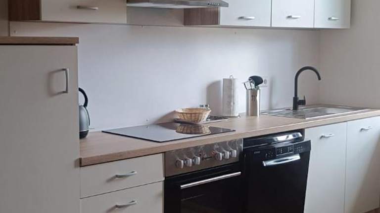 Die Unterkunft bietet eine gut ausgestattete Küche, die mit einem Kühlschrank, Geschirrspüler, Ofen, Herdplatte, Toaster, Kaffeemaschine und Wasserkocher eingerichtet ist. Damit haben Gäste die Möglichkeit, ihre eigenen Mahlzeiten zuzubereiten.