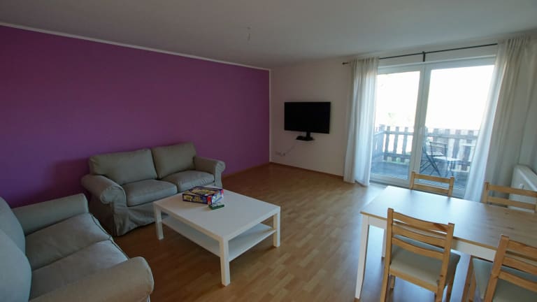 Es stehen 2 Apartments in unterschiedlichen Größen zur Verfügung. Alle Apartments verfügen über folgende Ausstattung: Wohnzimmer mit Flachbildschirm und Sky-Programmen Essbereich im Wohnzimmer Küche mit Herd, Backofen, Mikrowelle, Geschirrspüler, Kühl- / Gefrierkombination, Kaffeemaschine, Wasserkocher und Utensilien Badezimmer mit Tageslicht und Waschmaschine Schlafzimmer Babyreisebett mit Bettwäsche bei Bedarf Kinderhochstuhl bei Bedarf Bettwäsche, Handtücher und Küchentücher Kostenfreies WLAN Autoabstellplätze auf dem Hof