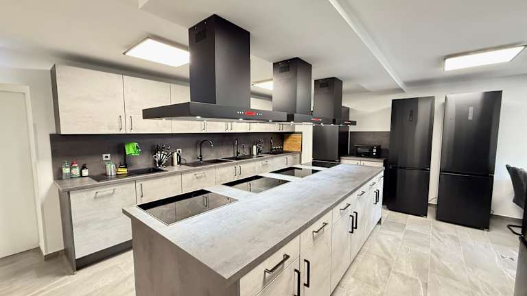 Es besteht die Möglichkeit, Essenslieferungen in die Unterkunft zu bestellen. In der Gemeinschaftsküche können Gäste ihre eigenen Mahlzeiten zubereiten.