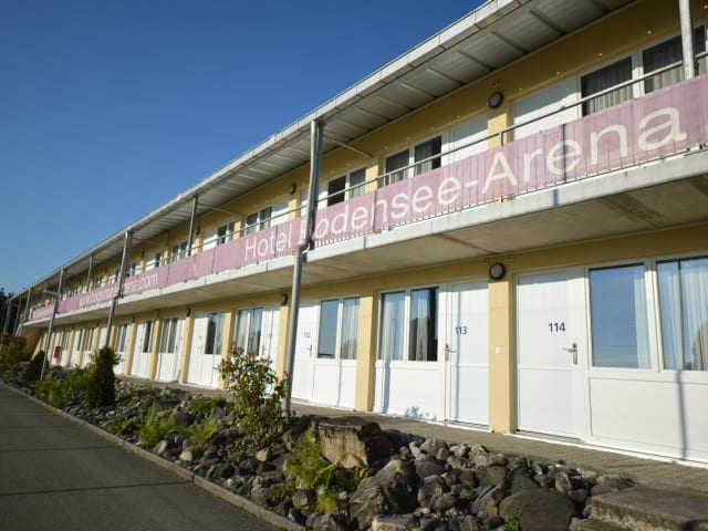 Das Hotel Bodensee-Arena zeigt sich als funktionales Sporthotel mit einem klaren Fokus auf Bequemlichkeit. Die Zimmer sind praktisch eingerichtet und bieten Kabel-TV, Seeblick sowie ein eigenes Bad. Die Zimmer sind von aussen zugänglich, was für zusätzlichen Komfort sorgt. In der Anlage stehen Privatparkmöglichkeiten zur Verfügung, die kostenfrei genutzt werden können.