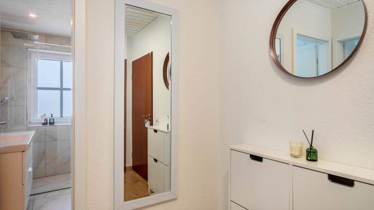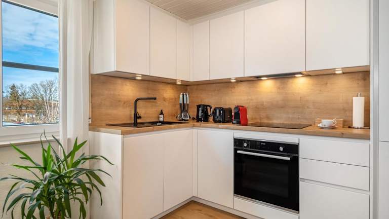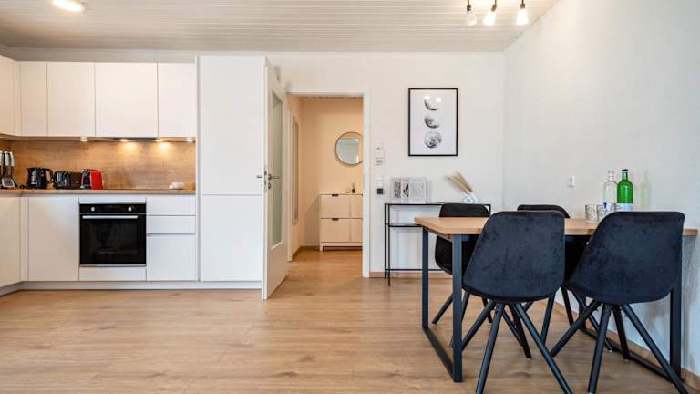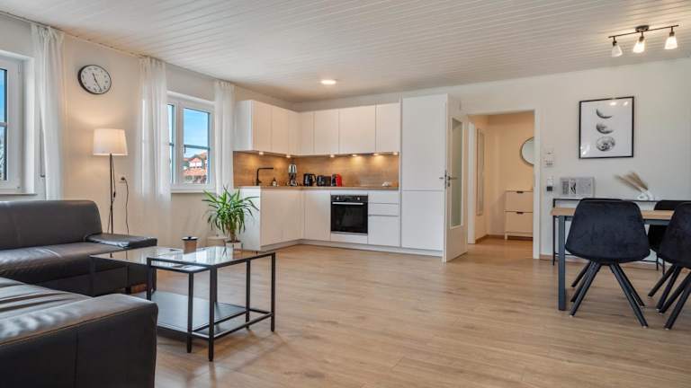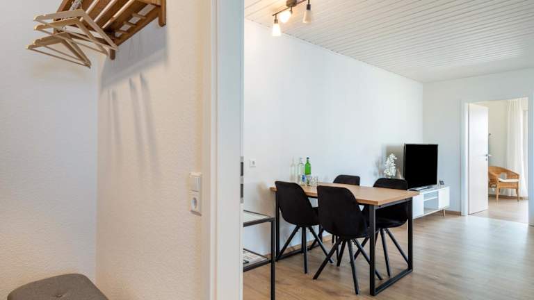 Die Ferienwohnung hat ein Schlafzimmer, ein Wohnzimmer, einen TV sowie eine gut ausgestattete Küche mit Kühlschrank und Geschirrspüler. Zudem gibt es ein Badezimmer mit Dusche. Handtücher und Bettwäsche werden zur Verfügung gestellt.