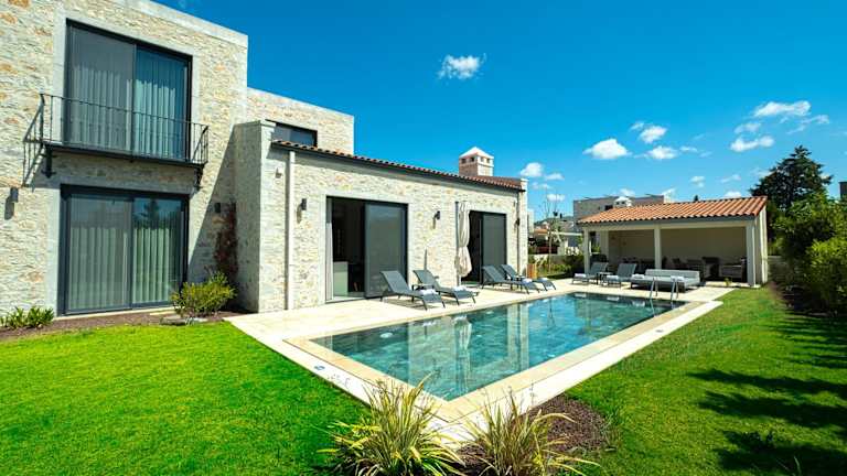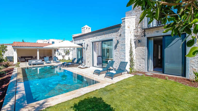Die Zimmer der Villa sind komfortabel und modern eingerichtet und verfügen über eine Terrasse mit Poolblick. Die Zimmer sind mit einem Sitzbereich, einem Satelliten-Flachbild-TV und einer voll ausgestatteten Küche ausgestattet, die Kühlschrank, Geschirrspüler, Ofen, Mikrowelle, Herdplatte, Kaffeemaschine und Wasserkocher umfasst. Das eigene Badezimmer ist mit einer Dusche und kostenlosen Pflegeprodukten ausgestattet.