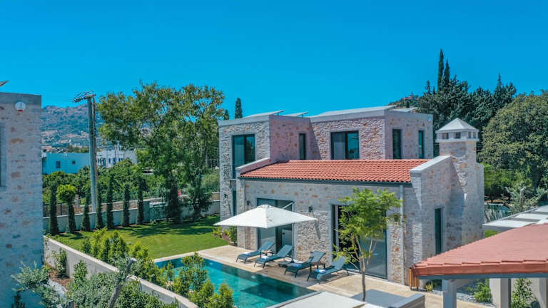 Die Bodrum Ortakent Luxury Private Villa with Pool bietet Übernachtungsmöglichkeiten in einer komfortablen Unterkunft mit Gartenblick. Ausgestattet mit einem Außenpool, einem Garten und einem eigenen Strandbereich, können Gäste hier entspannende Zeiten verbringen. Außerdem stehen Tennisplätze und Grillmöglichkeiten zur Verfügung.