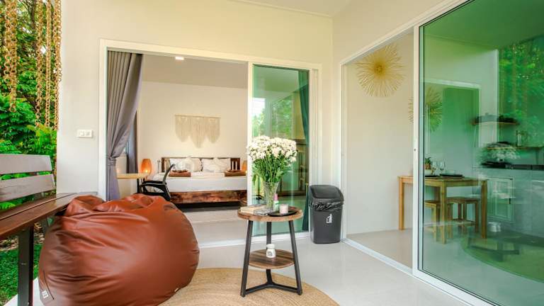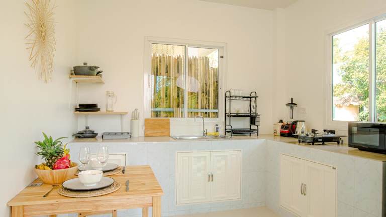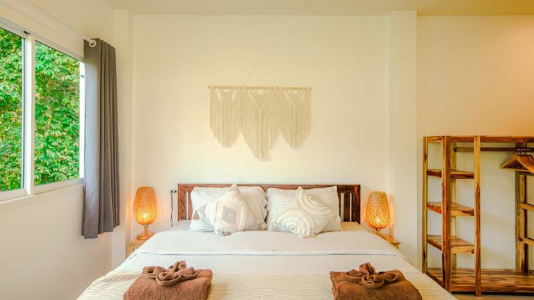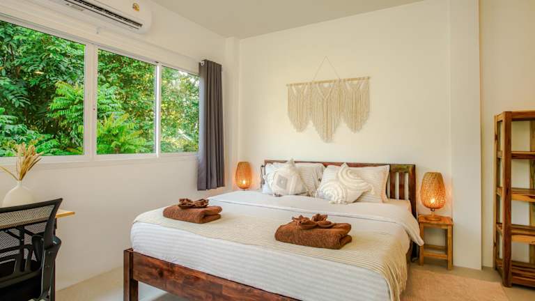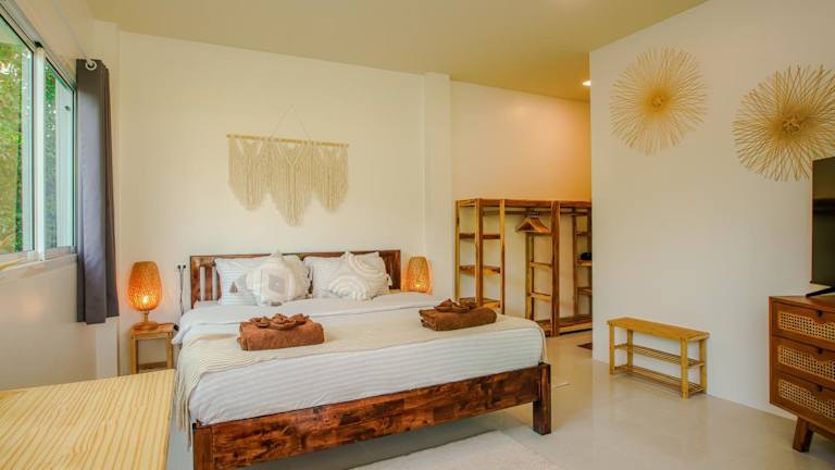 Boho House - 2mn Srithanu - King Bed - 4K SmartTV ist eine gemütliche Unterkunft, die ihren Gästen eine ruhige Atmosphäre und eine heimelige Terrasse mit Gartenblick bietet. Die Unterkunft stellt kostenloses Wifi und einen Privatparkplatz zur Verfügung.